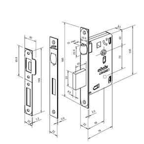 Descrição técnica: imab 1710: fechaduras de embutir para portas de bater e pivotantes em madeira ou metálicas.