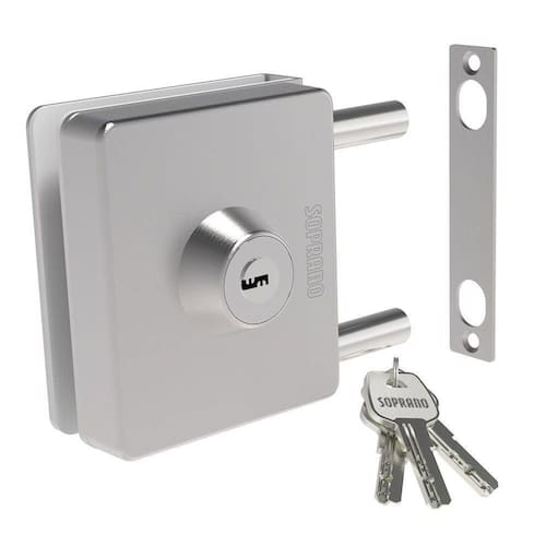 Fechadura Soprano de Sobrepor Vidro/Alvenaria Pivotante 2P Fechadura Auxiliar Soprano, Linha Blindex, com Encaixe de Sobrepor e fixação com Pressão. Especificações: - Fabricante: Soprano - Sistema de Trava: Externa Só chaveia por fora - Versão: Vidro/Alvenaria - Acabamento Inox Escovado - Chave Multiponto Acompanha 3 chaves - Para vidros com espessura entre 10mm mínimo e 12mm máximo . - Modelo: VA158 2 Pinos
