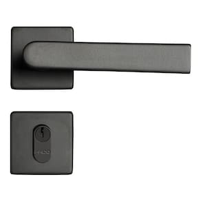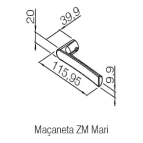 2 maçanetas de zamac no acabamento preto, com acionamento tipo alavanca; fixadas em 2 ferros bicromatizados de 80mm que são fixados por 2 parafusos allen sem cabeça