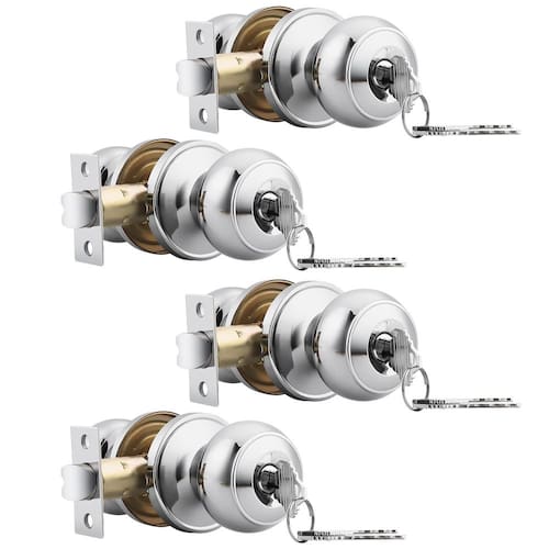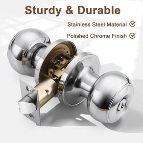 - Material: aço inoxidável; cor: cromo polido; conjunto de bloqueio banhado a aço inoxidável com acabamento em níquel acetinado que não enferruja, durável para uso duradouro. Ótima qualidade e alta segurança: em conformidade com ANSI grau 3 excede 200.000 cilindros e cilindro de latão de 5 pinos; parafuso de segurança de coluna sólida para proteção anti-serragem