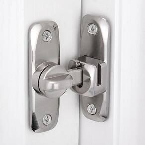 - ?Aplicação versátil?- Adequado para a maioria das portas, incluindo portas de quarto, portas de varanda, portas de garagem, portas de celeiro, armários de cozinha e muito mais, esta trava de porta fornece uma medida de segurança para sua família para evitar a entrada não autorizada e manter crianças e animais de estimação seguros dentro de casa.