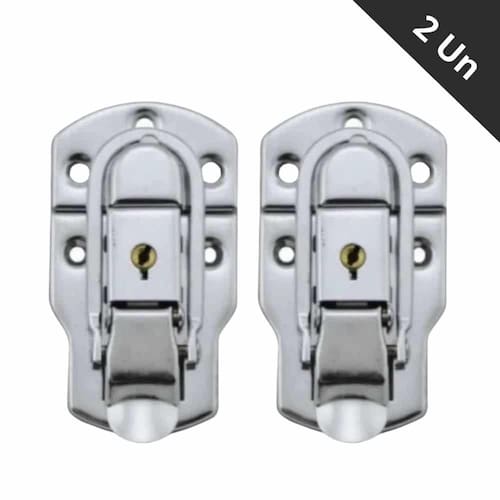 Fecho de metal externo com acabamento cromado para cases e maletas. Kit com 2 unidades.