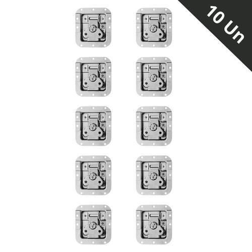 Fecho de metal médio borboleta com porta cadeado e acabamento cromado para cases e maletas. Kit com 10 peças.