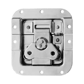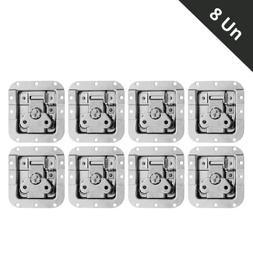 Fecho de metal médio borboleta com porta cadeado e acabamento cromado para cases e maletas. Kit com 8 unidades.