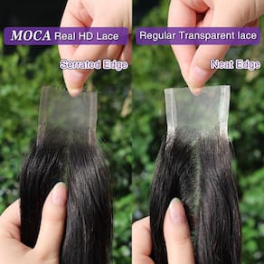 - Renda HD de 0,1 mm ultrafina semelhante à pele: a renda frontal HD 2x6 da Body Wave é anteriormente proveniente da Swiss HD Lace, em comparação com a maioria das rendas transparentes, a renda HD é mais fina e mais translúcida. Renda com fecho MOCA HAIR de apenas 0,1 mm, o que maximiza a invisibilidade e imperceptibilidade