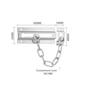 - Aço espesso, durável e resistente á deformaçao e ferrugem - Corrente com boa vedação, elos firmemente fechados, dificil de deformar ou soltar. - Aplicável em diversos cenários, deial para instalação em portas de madeira de apartamentos, casas..