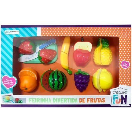 Com a comidinha de brinquedo Creative Fun Feirinha divertida de frutas da Multikids as meninas poderão montar a sua brincadeira em qualquer lugar. O brinquedo acompanha 10 acessórios entre maçã, laranja, banana, faca e tábua para deixar a sua feirinha uma delícia Com ele é possível criar receitas de faz de conta e aproveitar os acessórios para colocar a criatividade em prática. Além de estimular a imaginação o Creative Fun Feirinha divertida de frutas desenvolve a socialização, coordenação visual, exercita a criatividade e fantasia. Certificado pelo INMETRO: CE-BRI/BRICS 00577-17 Recomendado para maiores de 3 anos. Referência:BR1112 Conteúdo: 10 peças sendo: - 01 Morango - 01 Laranja - 01 Maçã - 01 Banana - 01 Cacho de uva - 01 Abacaxi - 01 Melancia - 01 Limão - 01 Faca - 01 Tábua para cortar frutas Material: Plástico Peso do produto com embalagem: 410 g Dimensões do produto com embalagem Largura:6 cm Altura:23 cm Comprimento:37cm Prazo de Garantia03 meses de garantia legal. Ean: 7899838864556