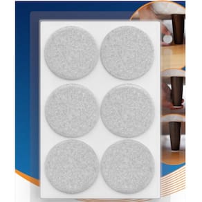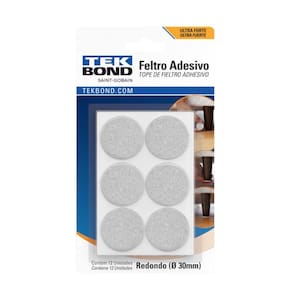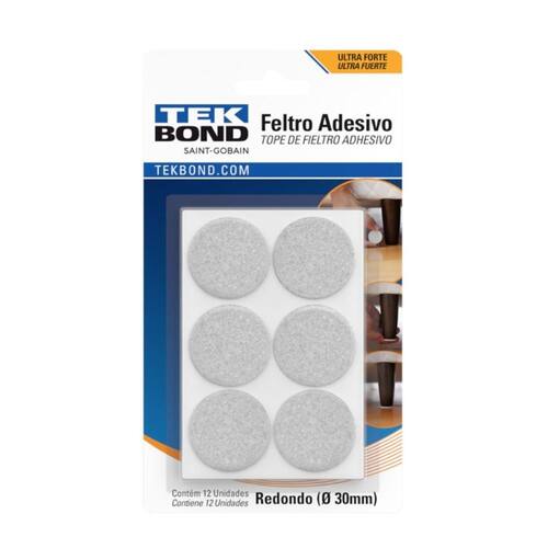 - Marca: Tekbond; - Formato: Redondo; - Cor: Branco; - Composição: Material à base de viscose e poliéster; - Contém 12 unidades; - Absorve o impacto de batidas ou quedas e previne problemas com riscos, protegendo objetos, pisos e diferentes superfícies com eficiência, de forma prática e rápida; - Ideal para usar em móveis para proteger pisos delicados, para evitar deslizamentos, riscos e batidas causadas pela movimentação de móveis; - Possui excelente aderência em diversas superfícies.