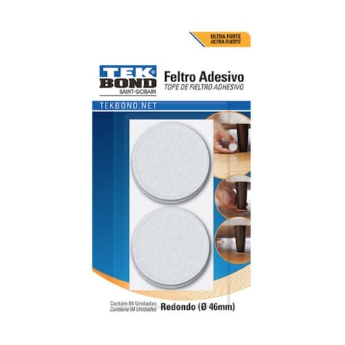 - Marca: Tekbond; - Formato: Redondo; - Cor: Branco; - Composição: Material à base de viscose e poliéster; - Contém 4 unidades; - Absorve o impacto de batidas ou quedas e previne problemas com riscos, protegendo objetos, pisos e diferentes superfícies com eficiência, de forma prática e rápida; - Ideal para usar em móveis para proteger pisos delicados, para evitar deslizamentos, riscos e batidas causadas pela movimentação de móveis; - Possui excelente aderência em diversas superfícies.