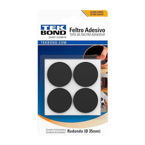 Limpe cuidadosamente a superfície onde deseja aplicar o feltro, removendo poeira e sujeira para garantir uma aderência ideal. Remova o filme protetor da peça de feltro, evitando tocar na área adesiva com os dedos. Posicione o feltro no local desejado e pressione firmemente para garantir uma fixação segura. Além de evitar deslizamentos, riscos e batidas, o Feltro Redondo 35mm Preto Cartela 8 Unidades Tekbond também proporciona uma proteção eficaz contra danos causados por quedas acidentais. Com este produto, você pode desfrutar de uma casa ou escritório bem protegido, mantendo seus móveis e pisos em excelente estado por muito mais tempo. Adquira já e experimente a qualidade e praticidade que só a Tekbond pode oferecer.