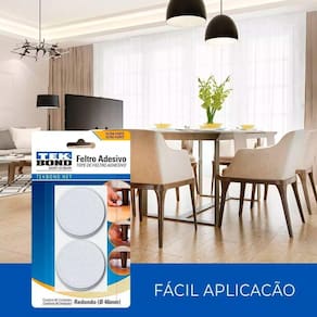 Limpe cuidadosamente a superfície onde deseja aplicar o feltro, garantindo que esteja livre de poeira e oleosidade para uma aderência ideal. Remova o filme protetor da peça de feltro, evitando tocar na área adesiva com os dedos. Posicione o feltro no local desejado e pressione firmemente para garantir uma fixação segura e duradoura. Com o Feltro Redondo 46mm Branco Cartela 4 Unidades Tekbond, você pode proteger seus móveis, pisos e superfícies com eficiência, mantendo sua integridade e beleza por mais tempo. Não permita que batidas e arranhões comprometam a aparência e a funcionalidade de seus objetos - adquira já este produto e desfrute de uma proteção confiável e duradoura em todos os seus ambientes.