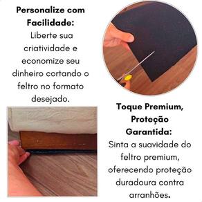 Limpe cuidadosamente a superfície onde deseja aplicar o feltro, garantindo que esteja livre de poeira e oleosidade para uma aderência ideal. Remova o filme protetor da peça de feltro, tomando cuidado para não tocar na área adesiva com os dedos. Posicione o feltro no local desejado e pressione firmemente para garantir uma fixação segura e duradoura. Com o Feltro Retangular 127x51mm Preto Cartela 2 Unidades Tekbond, você pode proteger seus móveis, pisos e superfícies com eficiência, mantendo sua integridade e beleza por mais tempo. Não permita que batidas e arranhões comprometam a aparência e a funcionalidade de seus objetos - adquira já este produto e desfrute de uma proteção confiável e duradoura em todos os seus ambientes.