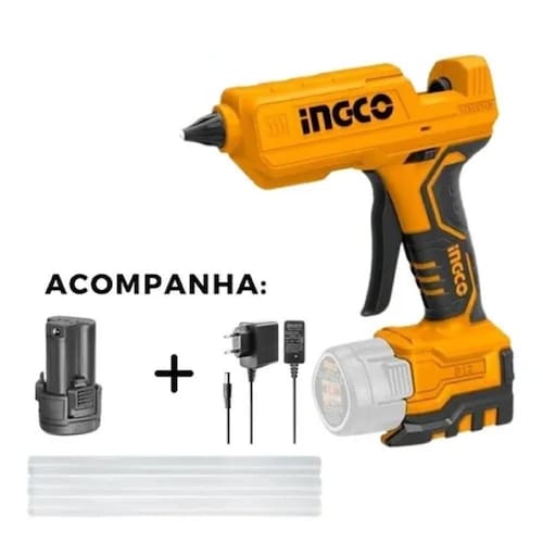 Ferramenta de aplicação aplicadora cola quente ingco à bateria íon-lítio 12v + bateria 1,5 amper + carregador bivoltcaracterísticas:ferramenta de aplicação: tensão: 12v capacidade de aplicação de cola: 15-18g /min tempo de aquecimento: 3 a 5 minutos diâmetro do bastão de cola: 11,2 mmacompanha: 3 bastões de cola de 150mmbateria: tensão: 12v bateria de íon-lítio 1,5ah atende diversas ferramentas ingco 12v s12 carregador: tensão de entrada:100-240v50/60hz carrega bateria de 12v 1. 5ah em 2h