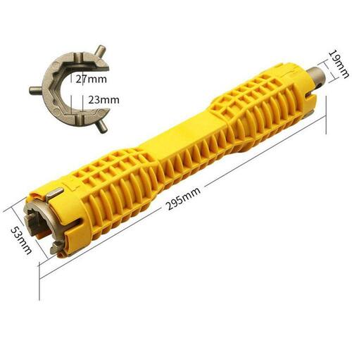 Multi-Purpose Plumbing Tool Sink Installation Tool Socket Wrench Power Drill Ratchet Socket Wrench Gator Wrench Magic Grip Multi-function under-sink ferramenta de encanamento. para segurar e remover porcas de pia de plástico, porcas de linha de fornecimento, juntamente com porcas de lug 7/8 in. hexadecimal e 1 in. O design longo permite que você gire porcas de montagem difíceis de alcançar em torneiras, sprinklers e torneirasO estilo de ranhura aberta permite fácil acesso às linhas de suprimentos existentes. Descrição: Tipo de item: Material da ferramenta: Metal + plástico Cor: laranja Tamanho do item: 25,5 * 5,7 * Diâmetro grande 5 * Pequeno diâmetro 3CM Pacote inclui: 1 x torneira e pia Installer Notas: Descrições: O acessório da válvula de desligamento torna difícil de alcançar paradas angulares sem estragar o cromo. O acessório da cesta de filtro mantém a unidade de drenagem no lugar enquanto você aperta a porca de coador. Apresenta alta resistência, construção de plástico leve e inserções de alumínio. Por favor, permita um erro aleatório de 1-3cm devido à medição manual