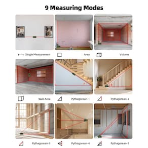 Ferramenta de medição a laser bilateral de 393 pés Classe a laser: Classe 2 (IEC/EN60825-1/2014), < 1 mW de potência de saída - Tecnologia de medição bilateral de alta precisão: esta ferramenta bilateral de medição a laser pode alternar entre os modos bidirecional e unidirecional. A referência de medição pode ser ajustada para atender a diferentes trabalhos de medição. Você não precisa mover a ferramenta de medição a laser com frequência, o que melhora muito a eficiência do seu trabalho e economiza seu tempo. Distância máxima de medição bidirecional de até 120 m, distância de medição unidirecional de até 196 pés-60 m, precisão de até ± 1/40.6 cm a 10.1 m - ?Tela LCD retroiluminada? Esta ferramenta de fita métrica a laser suporta rotação automática da tela. Ele gira automaticamente a tela dependendo do ângulo que você coloca, facilitando a leitura de dados. Você também pode bloquear a tela definindo a trava. Uma boa escolha para substituir a fita métrica a laser - ?9 modos de medição e várias funções? Esta ferramenta de medição a laser oferece 9 modos de medição, comprimento, área, volume, ângulo, área da parede e 4 modos pitagóricos, que podem atender às suas várias necessidades de medição em diferentes cenários. Unidades de M/entrada/pés + comutáveis, 100 grupos de dados podem ser armazenados para recuperação, com modo de adição e subtração para cálculo de dados de forma eficaz, modo de autocalibração. Você também pode obter o valor médio, máximo e mínimo facilmente medindo continuamente - ?Medidores de distância a laser recarregáveis Tipo? Nosso medidor a laser bilateral tem uma bateria recarregável de íons de lítio de 3,7 V 850 mAh embutida. Leva cerca de 1,5 horas para carregar totalmente e dura cerca de 5 horas. Você pode carregar este laser de medição de distância o dia todo e carregá-lo a qualquer momento com um cabo de carregamento tipo C. O status da bateria pode ser verificado através do visor LCD transparente - ?Sensor de ângulo digital e parte traseira magnética forte?Com o sensor de ângulo embutido, esta ferramenta de medição de distância a laser pode medir o ângulo em tempo real. Você pode obter rapidamente a direção e melhorar a precisão da medição. Com a parte traseira magnética, você pode fixar esta fita métrica digital com laser em superfícies ferromagnéticas para evitar se mover quando segurada com as mãos e melhorar a precisão, como tubos, conduítes elétricos, lâminas de serra de esquadria para marcenaria, aberturas e dutos - ?Mais recursos e o que você recebe?A medida de distância a laser é classificação IP54. O suporte rosqueado de 1/10.2 cm na parte traseira permite que seja anexado ao tripé para uso. Você receberá: 2 anos de serviço pós-venda, 1 ferramenta bilateral de medição a laser, 1 placa de medição auxiliar, 1 cabo tipo C, 1 alça de mão, 1 bolsa de transporte, 1 manual do usuário.