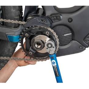 Ferramenta park tool lrt-2, projetada e construída para remover e instalar o anel de travamento que retém as coroas dianteiras encontradas nos motores das bicicletas elétricas shimano steps.