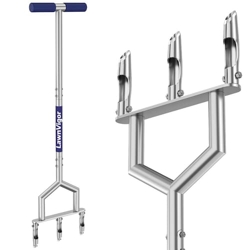 - AERADOR DE QUADRO NÃO ENCOLOGANTE: Projetado com 3 dentes ocos, este aerador de plugue de quintal remove eficientemente os tampões de solo enquanto evita entupimentos durante o uso e cria orifícios maiores e mais profundos para absorção de água e crescimento de raízes. O aerador de grama portátil possui dentes ocos substituíveis para facilitar a manutenção e durabilidade
