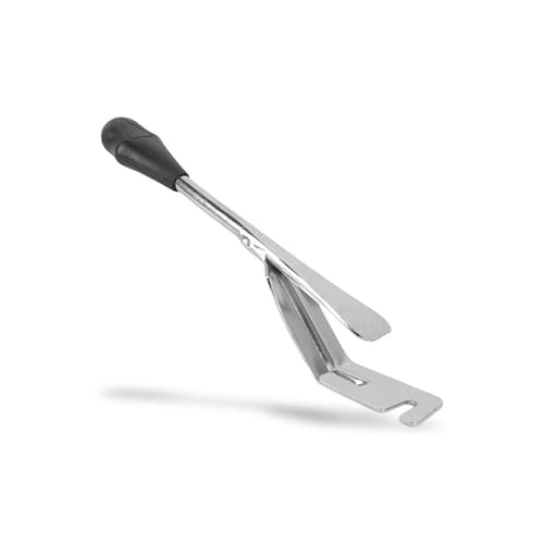 A Ferramenta mantém o talão do pneu pressionado no centro rebaixado do aro (vala), facilitando a instalação do restante do pneu no lado oposto.