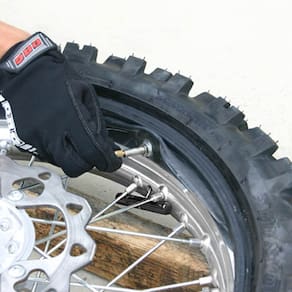 Ao fazer qualquer manutenção nos pneus sempre existe uma dificuldade, passar o bico da câmara de ar no furo do aro segurando o pneu com uma mão só.