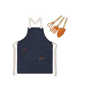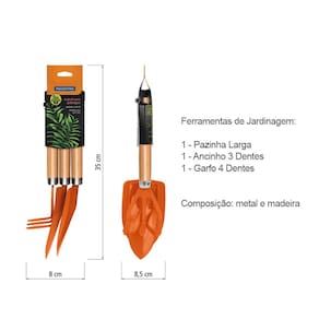 Kit de ferramentas para jardinagem e avental. O conjunto para jardinagem Tramontina é composto por três peças produzidas em metal com cabo de madeira, o conjunto traz ferramentas ideais para o trabalho ao ar livre. Avental corpo inteiro em jeans e alça de algodão cru. Alça regulável no pescoço e ajustável na cintura com bolso frontal. Ideal para chef de cozinha, barista, jardinagem, pintura e outros. Este avental atende bem aos clientes mais exigentes priorizando conforto, qualidade e estilo.