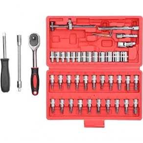 CaracterísticasAço Cromado Vanádio: Soquetes de alta qualidade 50 bv30 formados a frio, com torque 50% maior que o de aço carbono, acabamento liso e boa resistência à ferrugem.Materiais CR-V: Cabeça dos lotes com maior dureza e resistência.Chave de Catraca Reversível: Ajustável (positiva e negativa) com liberação rápida por botão de pressão, garantindo segurança e facilidade na troca dos soquetes.Catraca de 45 Dentes: Proporciona maior velocidade de operação.Uso Versátil: Ideal para manutenções em ar-condicionado, porcas de assento, para-choques, pneus, travas de portas de carro, bicicletas e mais.EspecificaçõesNúmero de Peças: 46Material da Maleta: TermoplásticoFerramentas: Aço cromo vanádioDimensões da Maleta: 24 x 13 x 5 cm (C x L x A)Peso: Aproximadamente 1,0 kgEncaixes: 1/4 padrão sextavadosLista de Embalagem13 Soquetes : 4 mm, 4,5 mm, 5 mm, 5,5 mm, 6 mm, 7 mm, 8 mm, 9 mm, 10 mm, 11 mm, 12 mm, 13 mm, 14 mm.21 Soquetes com Bits:Ponta Fenda: 4 mm, 5,5 mm, 7 mm.Ponta Hexagonal: 3 mm, 4 mm, 5 mm, 6 mm, 7 mm, 8 mm.Ponta Philips: 1, 2, 3.Ponta POZI: 1, 2, 3.Ponta Torx: T10, T15, T20, T25, T30, T40.03 Chaves Hexagonais L: 1,5 mm, 2 mm, 2,5 mm.01 Cabo Fixo .02 Extensões: 50 mm (2) e 100 mm (4).01 Extensão Flexível: 150 mm (6).01 Catraca Reversível com Quick Release: 15 x 2,7 x 2,3 cm.01 Cabo de Força T deslizante01 Junta Universal.01 Bit Adaptador.01 Maleta.Benefícios AdicionaisDurabilidade e Resistência: Feito para durar, com materiais de alta qualidade.Facilidade de Transporte e Armazenagem: Maleta prática e compacta.Versatilidade: Ferramentas úteis para diversas aplicações diárias.
