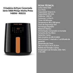 Fritadeira elétrica com capacidade de 4,1 L, indicada para porções de até 800 g. Possui painel sensível ao toque com 7 modos de preparo: petiscos congelados, batatas, carne, peixe, frango, bolo e vegetais. Ajuste de temperatura de 80 a 200 graus e temporizador de até 60 minutos. Acessórios removíveis com revestimento antiaderente, compatíveis com lava-louças.