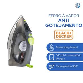 O Ferro a Vapor Black+Decker FX2750 é a solução ideal para quem busca praticidade e eficiência ao passar roupas. Com base cerâmica antiaderente, ele desliza com facilidade sobre os tecidos e distribui o calor de forma uniforme. Conta com potente vapor contínuo, jato de vapor extra e função spray frontal, que ajudam a eliminar até os vincos mais difíceis. Possui função vapor vertical, permitindo desamassar roupas diretamente no cabide. O sistema antigotejamento evita manchas nas roupas durante o uso, enquanto a função autolimpeza facilita a manutenção e prolonga a vida útil do aparelho. Com potência de 2000W 220V e reservatório de 340 ml, é ideal para o uso diário. Seu cabo giratório 360 oferece mais mobilidade, e o controle de temperatura com guia de tecidos garante segurança em todos os tipos de roupa. Especificações Técnicas: