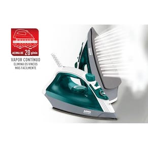 • Sola 25% maior**: com sua base ampla você conseguirá passar suas roupas com muito mais rapidez e obter resultado mais precisos em todos os tipos de roupas e tecidos. • Ponta de precisão: adaptada de forma perfeita para desamassar até as zonas de mais difícil acesso das suas roupas como entre os botões, no colarinho e nos punhos. • 2X Mais Vapor***: para deixar suas roupas ainda mais perfeitas, o novo ferro de passar Arno possui vapor contínuo de 20gr/min e extra de até 100gr/min que oferecem até 2X mais vapor ajudando a amolecer as tramas da roupa e tornando o processo de passar roupas muito mais simples e eficiente. • Base antiaderente: não gruda nas roupas possibilitando um deslizar mais fácil e prático. • 1200W de potência: com 5 configurações de temperatura para uma performance sem igual. O ferro a vapor Arno Steamgliss com Base antiaderente ainda conta com a função Spray com tanque de água com grande capacidade (230 ml) para que você possa passar uma grande quantidade de roupa sem a necessidade de parar com frequência e alça ergonômica que torna o ato de passar mais natural - tudo pensado para a sua comodidade! Você imagina, clic, a Arno faz.