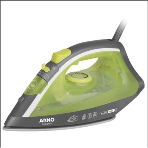 Ferro a vapor Arno Ecogliss FEC1Roupas impecáveis com facilidade e economia com o Ferro de Passar a Vapor Arno Ecogliss. Moderno, colorido, eficiente e econômico, o modo ECO alcança até 25% de economia de energia.Especificações:Marca: ARNOGarantia: 12 mesesFuncionamento: VaporCapacidade de água no reservatório: 200 mlMedidas:altura: 15,5 cmlargura: 29 cm profundidade: 13 cmcomprimento do cabo: 190 cmEspecificações técnicas:Voltagem: 220V não é bivolt Consumo kWh : - 220V: 13,9 Potência W : - 220V: 1740 Peso kg : 0.970Referência: FEC1Características:A base de Ceramic Glide, desliza facilmente por diversos tipos de tecidoCom capacidade para até 200 ml, você passa muitas roupas usando os vários sistemas de vapor e spray, o que deixa garante resultados rápidosAlta performance na remoção de dobras com o Vapor Extra, Vertical e Spray. Você passa as roupas direto do cabide, muito mais praticidade no seu diaO sistema Corta-Pingos, evita pingos nas roupas mesmo quando o ferro estiver em baixas temperaturas. Para sua segurança apresenta lâmpada piloto que indica que está ligado e possui o sistema de desligamento automáticoEconomia e eficiência na hora de passar roupasItens Inclusos: 01 ferro a vapor Arno Ecogliss 01 manual do produto
