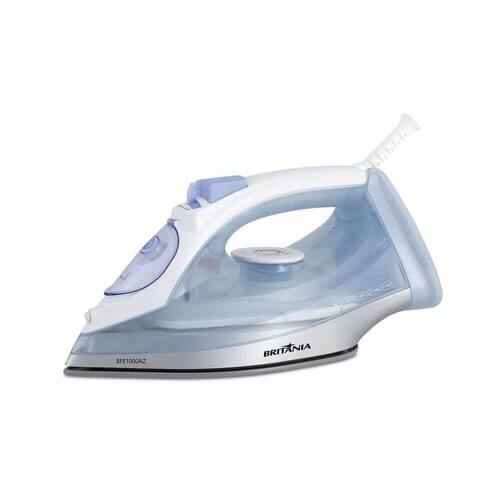 O Ferro a Vapor Britania BFE1000AZ Nano Ceramic Eco 430ml e a escolha ideal para sua casa! Com uma base antiaderente que, junto ao vapor, desliza suavemente sem deixar marcas nos tecidos. Seus dois niveis de vapor e a funcao de vapor extra garantem um desamasso eficiente, utilizando 98 saidas de vapor que eliminam ate os vincos mais resistentes. O seletor de temperaturas e perfeito para todos os tipos de tecidos, enquanto o salva botoes protege suas roupas de danos. Desamasse suas pecas de forma rapida e sem esforco!
