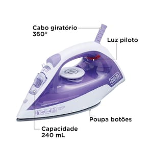 SimFerro a Vapor Black+Decker FX1050 1200W Base Antiaderente Spray Frontal Cabo Giratório