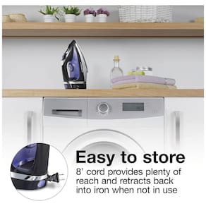 Do elegante algodão das camisas ao casual jeans, o ferro com base de aço inoxidável desliza suavemente sobre todos os tipos de tecido. Sua construção resistente e durável oferece anos de desempenho excepcional, resistindo a desgastes e arranhões. Com um cabo retrátil de 2,4 metros, é fácil de armazenar quando não está em uso. Aquece em menos de um minuto, garantindo remoção rápida e eficaz de rugas em diversos tecidos. Oferece opções versáteis de vapor, incluindo jato de água e vapor extra, com função de vapor vertical. Controle total do vapor para resultados excelentes em todos os tecidos. Ideal para passar sem necessidade de tábua de passar.