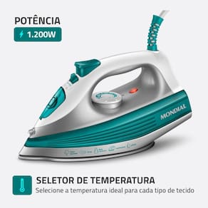 Com o Ferro a Vapor FVN-01 da Mondial, você vai passar suas roupas com menos esforço e mais agilidade. A tecnologia da Base Cerâmica Diamante permite que o ferro deslize suavemente sobre o tecido e passe mais rápido. Se você precisa tirar amassados e vincos mais difíceis, as funções Vapor Contínuo, que libera alta quantidade de vapor, e Spray Umedecedor são seus aliados. Saiba mais sobre os benefícios do Ferro a Vapor Mondial:
