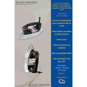 NãoFerro De Passar Roupa A Seco Black + Decker Com Base De Alumínio VFA1110MT2 127V