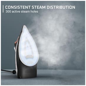 Algodão, Rayon, Poliéster, Seda Accessteam um poderoso ferro a vapor com mais de 300 microfuros para a melhor distribuição de vapor Durável e desempenho dia após dia ferro a vapor de longa duração com aço inoxidável de alta qualidade e engenharia excepcional Versátil e fácil a função de vapor vertical cobre roupas delicadas e grandes, além de ternos e cortinas Sessões de engomar mais eficientes e excelente distribuição de vapor com um deslizamento perfeito através da exclusiva tecnologia patenteada da base Microsteam 300 Jato de vapor potente 180 g, min para vincos persistentes Fácil de usar o botão térmico de 3 posições torna o engomar simples, com uma ponta de precisão para áreas de difícil acesso