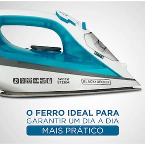 Passe suas roupas, inclusive de tecidos mais delicados, com facilidade, rapidez e seguranca com o Ferro a Vapor Black+Decker . A base antiaderente possui a tecnologia do revestimento Ceramic Gliss, que desliza melhor sobre o tecido e nao marca suas roupas, evita varias passadas e otimiza o seu tempo. Alem disso, a base tem amplas saidas de vapor, que desamassam os tecidos e eliminam vincos e rugas mais resistentes. A versatilidade do Ferro Black+Decker esta presente na Funcao Vapor vertical, capaz de passar as roupas direto do cabide. O design moderno e ergonomico sao outras caracteristicas que facilitam sua vida, o cabo giratorio proporciona maior mobilidade e conforto. Leve, eficiente, possui seletor de temperatura de acordo com o cada tipo de tecido, ideal para voce passar suas roupas com seguranca e sem danificar o tecido. Alto desempenho e dinamismo para passar camisas, calcas, blusas, vestidos e muito mais.