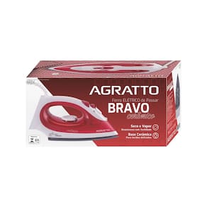 Suas roupas como novas! A linha de Ferros de Passar Agratto veio para completar sua casa. Todas as bases são antiaderentes, os cabos possuem reforço e a alça é ergonômica.- Compacto e eficiente: Design compacto e leve, para passar as roupas sem se cansar.- Regulagem de temperatura: Ajuste para diversos tipos de tecidos.- Base de aquecimento antiaderente: Ajuda a manter as roupas mais lisas.- Salva botões: A ponta dos ferros são arredondadas para evitar perfurações e o arrancar de botões.- Luz indicadora de funcionamento: Avisa quando o ferro está em funcionamento e aquecido.- Alça ergonômica: Alça com empunhadura confortável - Marca: Agratto- Modelo: BRAVO CERÂMICO- Portátil: Sim- Potência (W): 1250- Certificado: Inmetro- Seletor de Temperatura: Sim- Cor: Branco, Vermelho- Voltagem: 127V- Base cerâmica- Para tecidos delicados- Ferro a seco e vapor- Com controle de temperatura- Com jato de água e de vapor- Ponta salva botões- Reforço salva cabos
