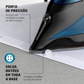 Passadas sem esforço com o novo Ferro a Vapor Mondial. Base cerâmica diamante desenvolvida para deslizar suavemente sobre os tecidos. Seu grande reservatório de 400ml permite um uso contínuo por mais tempo, com seletor de temperatura e você escolhe a opção de tecido que irá passar. Aproveite o controle de saída de vapor, ajustando à sua necessidade. Vapor extra e vertical liberado em alta quantidade, passando na horizontal ou direto no cabide. Spray umidificador que auxilia na remoção de vincos mais difíceis. A borda salva botões protege todos os botões de suas roupas e a ponta de precisão alcança os lugares mais difíceis, sem danificar. Possui led luminoso que indica o funcionamento do produto e o cabo giratório que destrava os movimentos durante as passadas. Para limpar o acúmulo de minerais e resíduos naturais do reservatório use o sistema autolimpante.