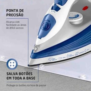 Mobilar eletro há mais de 25 anos inovando em produtos e atendimentoFerro de passar roupas mondial base ceramica diamante a vapor , seco e com spray de agua, seletor de temperaturaCom o ferro a vapor fvn-01 da mondial, você vai passar suas roupas com menos esforço e mais agilidade. A tecnologia da base cerâmica diamante permite que o ferro deslize suavemente sobre o tecido e passe mais rápido. Se você precisa tirar amassados e vincos mais difíceis, as funções vapor contínuo, que libera alta quantidade de vapor, e spray umedecedor são seus aliados. Saiba mais sobre os benefícios do ferro a vapor mondial:Base cerâmica diamante: a tecnologia permite que o ferro deslize suavemente sobre o tecido e passa mais rápido. A agilidade na hora de passar roupas é garantidaPassa a seco e a vapor: com a variação, você pode passar diferentes tipos de tecido de forma mais eficiente.Vapor contínuo e spray: o ferro libera alta quantidade de vapor e possibilita remover os amassados das roupas. Além disso, o spray umedecedor é mais um aliado na tarefa e facilita a retirada dos vincos mais difíceis.Reservatório de 220ml: proporciona maior autonomia e praticidade ao passar.Sistema autolimpeza: limpa o acúmulo de minerais e resíduos nas saídas de vapor.Cabo giratório de 360: maior autonomia de movimento durante o uso: cabo embolado nunca maisSeletor de temperatura e led luminoso: é possível controlar a temperatura ideal, de acordo com cada tipo de tecido. O led luminoso indica, ao apagar, que o ferro está na temperatura escolhida para passar.Salva botões: o sistema salva botões em toda a base protege os botões das suas roupas e garante acabamento perfeito.Ponta de precisão: permite alcançar com facilidade as áreas de difícil acesso na hora de passar.Um ano de garantia mondial: a mondial é a escolha de milhões de consumidores. Mondial, a escolha inteligenteModeloFvn-01-blCorAzulTipoFerro a vaporVoltagem tensão 220vPotência1200wMaterial da baseCerâmicaCapacidade do reservatório ml 220mlRecursosBase cêramica; salva botões em toda base; controle de saída de vapor; vapor extra; led luminoso; cabo giratório; spray umedecedorsistema autolimpante;Temperatura quantidade AjustávelLuz pilotoSimAção do produtoPassa a seco e a vaporSegurança-Material do corpoPpAlimentaçãoEnergia elétricaDimensões do produto14cm x 10cm x 25cm axlxp Peso do produto0,800kgComprimento do cabo1,50mItens inclusos01 ferro - manual de instruçõesGarantia12 meses