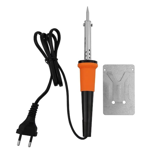Ferro de solda 30 W 220 V Western G12-220 - Temperatura máxima: 400º C - Ferro de solda é indicado para soldagem de componentes eletrônicos e de outros pequenos reparos. Com rápido aquecimento e manutenção da temperatura, proporciona maior produtividade na utilização. - Dimensões da peça: 20,5 x 3 x 2,9 cm - Material: Baquelite / Silicone / Cobre / Aço - Potência: 30 W - Tensão: 220 V - Frequência: 60 Hz - Contém: 1 ferro de solda e 1 suporte para fixação em parede - Cor: laranja Ean: 7897186074252