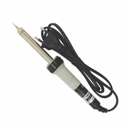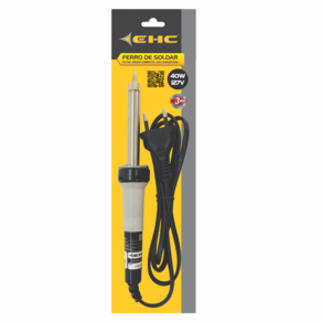 Ferro de solda EHC com cabo emborrachado para aplicação em solda de componentes eletrônicos e pequenas soldas. CARACTERÍSTICAS: - Ponteira de longa durabilidade, de fácil - 1,5mm, - Resistência de níquel-cromo com isolação em mica, - Temperatura máxima: 420 °C - Cordão com plugue certificado. 2X0,5mm² - 1,3m - Em conformidade com a NBR14136.