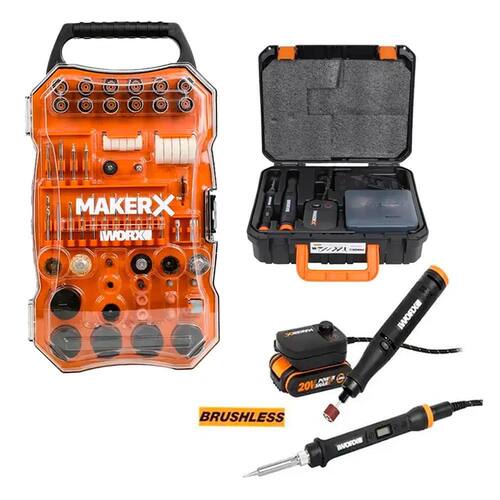 Kit Ferro de Solda e Micro Retífica BRUSHLESS à Bateria 20V com Bateria Carregador BIVOLT WX988 WORX