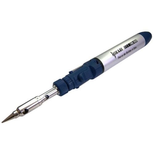 Ferro Gas Hk-900 Hikari O HK-900 é 3X1 ferro de solda, soprador termico e maçarico.Versátil. Profissional. 100% Seguro. Fácil de usar e Recarregar. Faixa de potência: 30100W Tempo de operação em ajuste médio : 60 min Temperatura da chama: 1300C Capacidade de gás: 20 ml Dimensões: 213x20x20mm CxLxA Peso: 59g Ean: 7899810412775