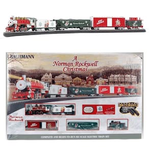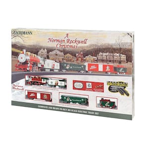 CARACTERÍSTICAS Farol de operação e concurso Três vagões detalhados com Norman Rockwell Holiday ilustrações Acopladores articulados E-Z Mate 47" x 38" oval Pista E-Z de ajuste de encaixe Controlador de velocidade com fiação plug-in Manual de instruções ilustrado