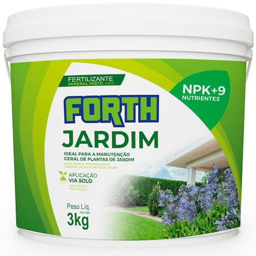 Atenção: Não jogar o adubo nas folhas. Para o plantio das plantas utilize o FORTH Plantio. Evitar aplicar nas horas mais quentes e sempre regar logo em seguida aplicação. A adubação com FORTH Jardim deve ser feita somente 30 dias após o plantio.