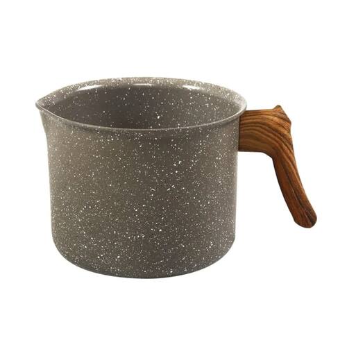 Leiteira Fervedor Indução 14cm Revestimento Cerâmico Grafito Mimo Style Ref: 9557 O fervedor de alumínio com revestimento cerâmico é prático e resistente. Sua estrutura dissipa melhor o calor tornando o processo mais rápido. Já o revestimento interno antiaderente facilita a limpeza. Material: Alumínio com revestimento cerâmico Cabo: Revestido de silicone Capacidade: 1,8 L Dimensões: Altura: 12cm x Diâmetro 14cm Cor: Marrom com pintinhas Serve para fogão indução, gás e vitrocerâmico
