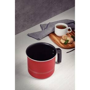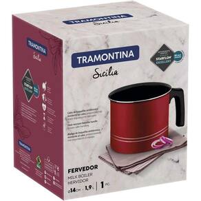 Características: Marca: Tramontina Linha: Sicília Cor: Vermelho Material: Alumínio Material da Alça/Pegador: Baquelite Antitérmico Antiaderente: Sim Espessura: 1,8mm Capacidade: 1,9L Diâmetro: 14cm Fogões Compatíveis: A gás, elétrico e vitrocerâmico Compatível com Lava Louças: Sim Possui Tampa: Não