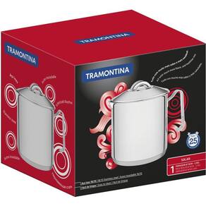 A Linha Solar da Tramontina é aquele clássico com design atemporal, grandes funcionalidades e a praticidade que precisamos no cotidiano. O fervedor é feito em aço inox, garantindo grande resistência e durabilidade, ainda com um fundo triplo (aço inox + alumínio + aço inox) que distribui o calor, gerando um cozimento rápido e uniforme. Acabamento em alto brilho é o detalhe que mais chama a atenção nesse item, mas ele também possui um desenho limpo e sem cantos que facilita a higienização, além de deixar a peça ainda mais elegante e moderna. E o melhor de tudo é que para os dias mais corridos você pode utilizar a lava-louças para fazer a limpeza do produto. Características: Marca: Tramontina Código do Fabricante: 62512145 Linha: Solar Cor: Inox Material: Aço Inox Material da Alça/Pegador: Aço Inox Fundo Triplo: Sim Espessura: 0,7mm Capacidade: 2L Diâmetro: 14cm Fogões Compatíveis: Gás, elétrico, vitrocerâmico e indução Compatível com Lava-louças: Sim Material da Tampa: Aço Inox Saída de Vapor: Sim