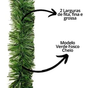 Produzido em PVC premium, o festão possui acabamento em verde fosco, que traz naturalidade e estilo, combinando com qualquer tema natalino. O modelo multi-fitas oferece um efeito mais cheio e robusto, ideal para quem busca um festão mais encorpado e sofisticado.