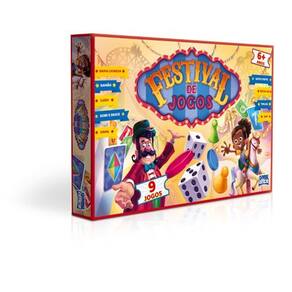 Um verdadeiro festival de jogos. Componentes 8 tabuleiros, 1 baralho com 56 cartas, 2 dados, 87 fichas e 1 regra.